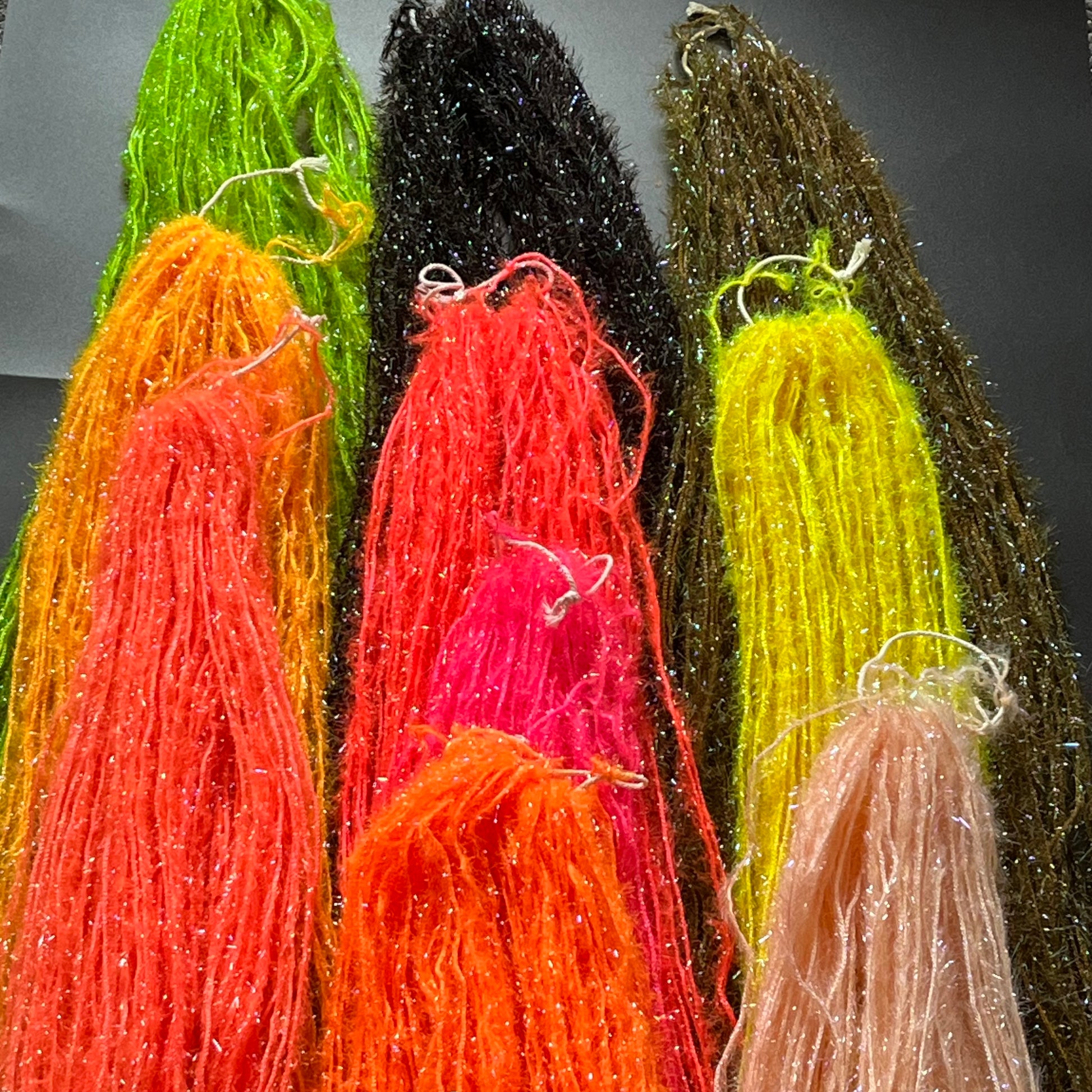Designed exclusively by ProTye, Mirage Straggle Fritz is our signature take on 12mm straggle fritz. Each colour is woven with a yellow pearl strand that reacts uniquely to light depending on the base dye – creating a subtle, shifting flash that changes character as it moves through the water.